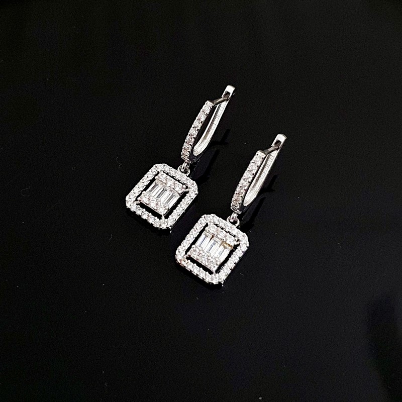 8 Ayar Beyaz Altın Sallantılı Baget Küpe KP07243