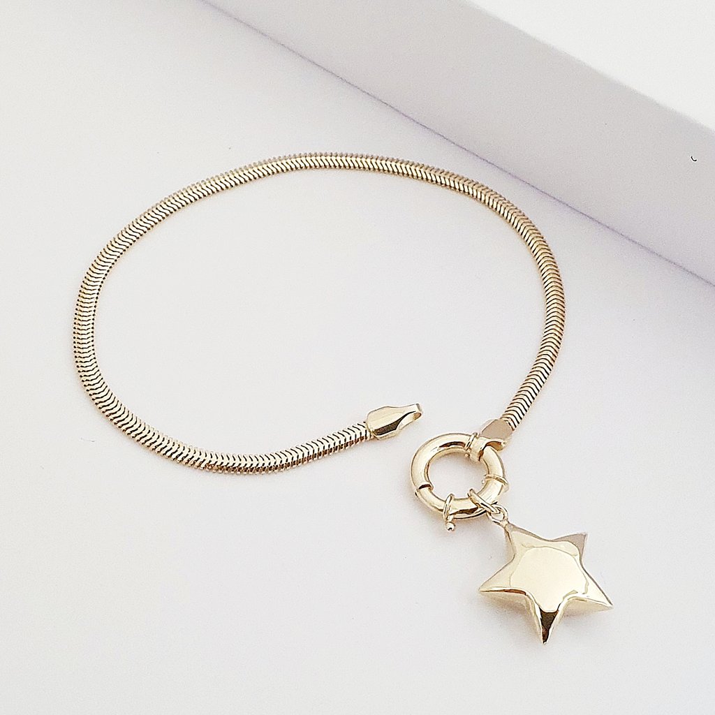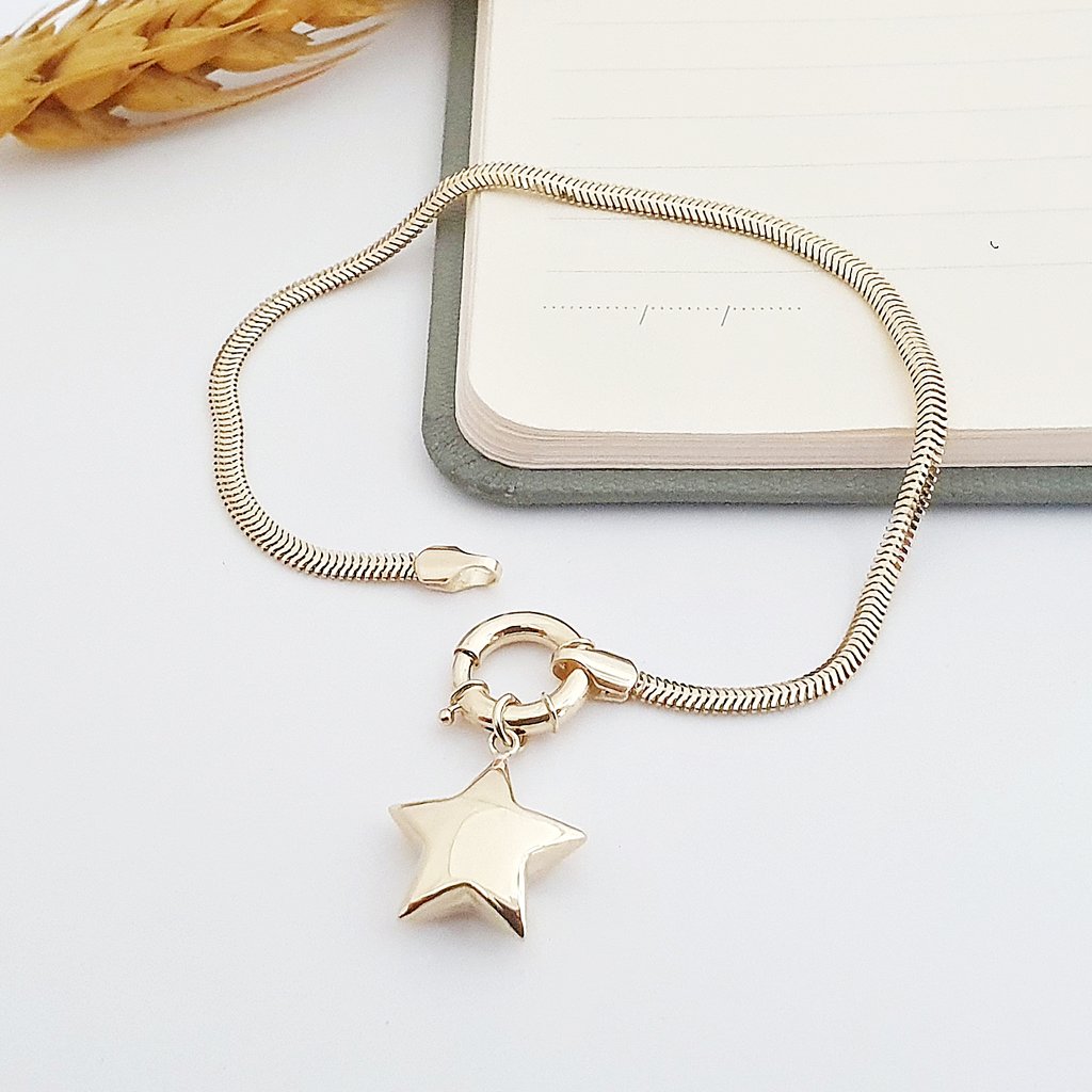 Bombeli Yıldız Charm İtalyan Ezme Zincirli Bileklik - KN10114