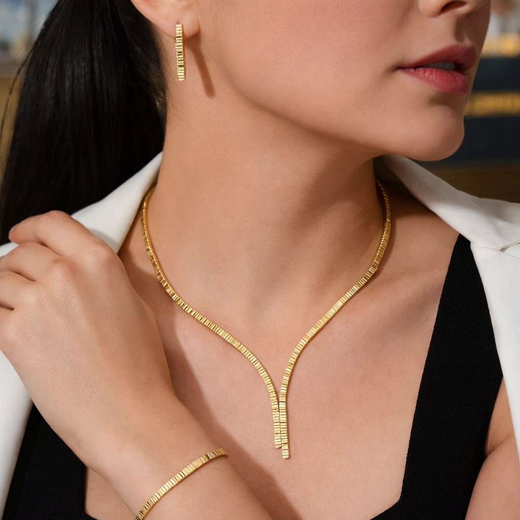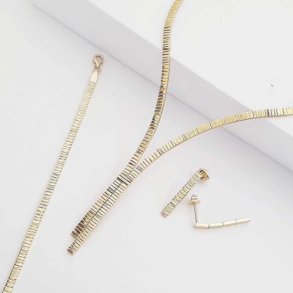 Çizgisel Dokulu 14 Ayar Altın Su Yolu Takı Seti GE00501