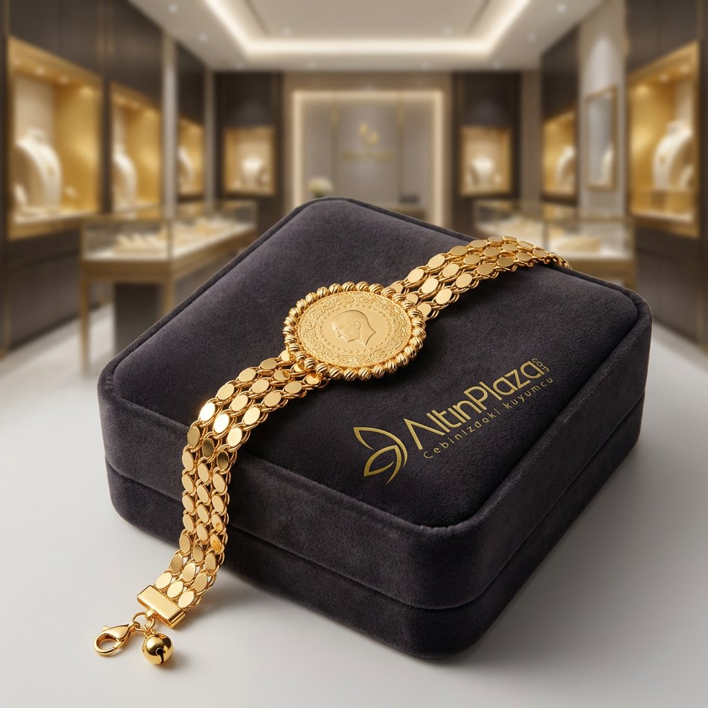 Dorika Çerçeveli Çeyrek Altınlı Pullu Bileklik