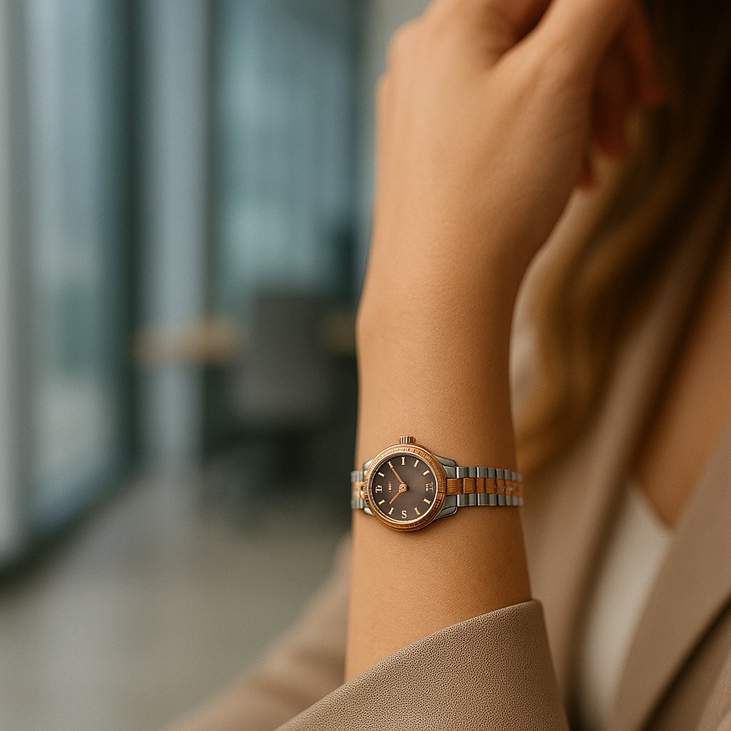 Renk Uyumu: Gümüş ve Rose Gold'un (Bicolor) modern birleşimi.