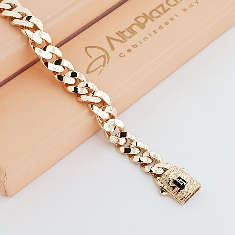Gravür Kilit Detaylı 14 Ayar Gurmet Bileklik KN06722