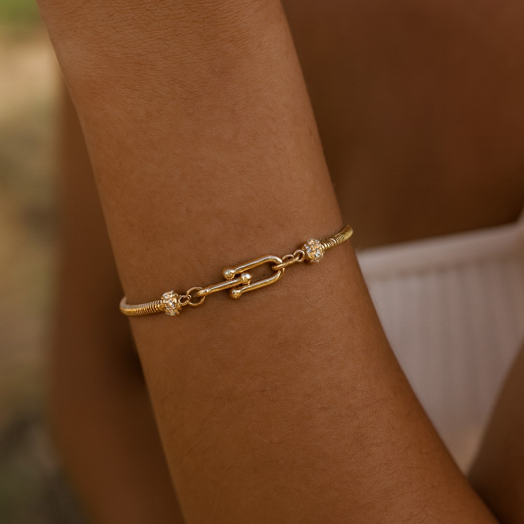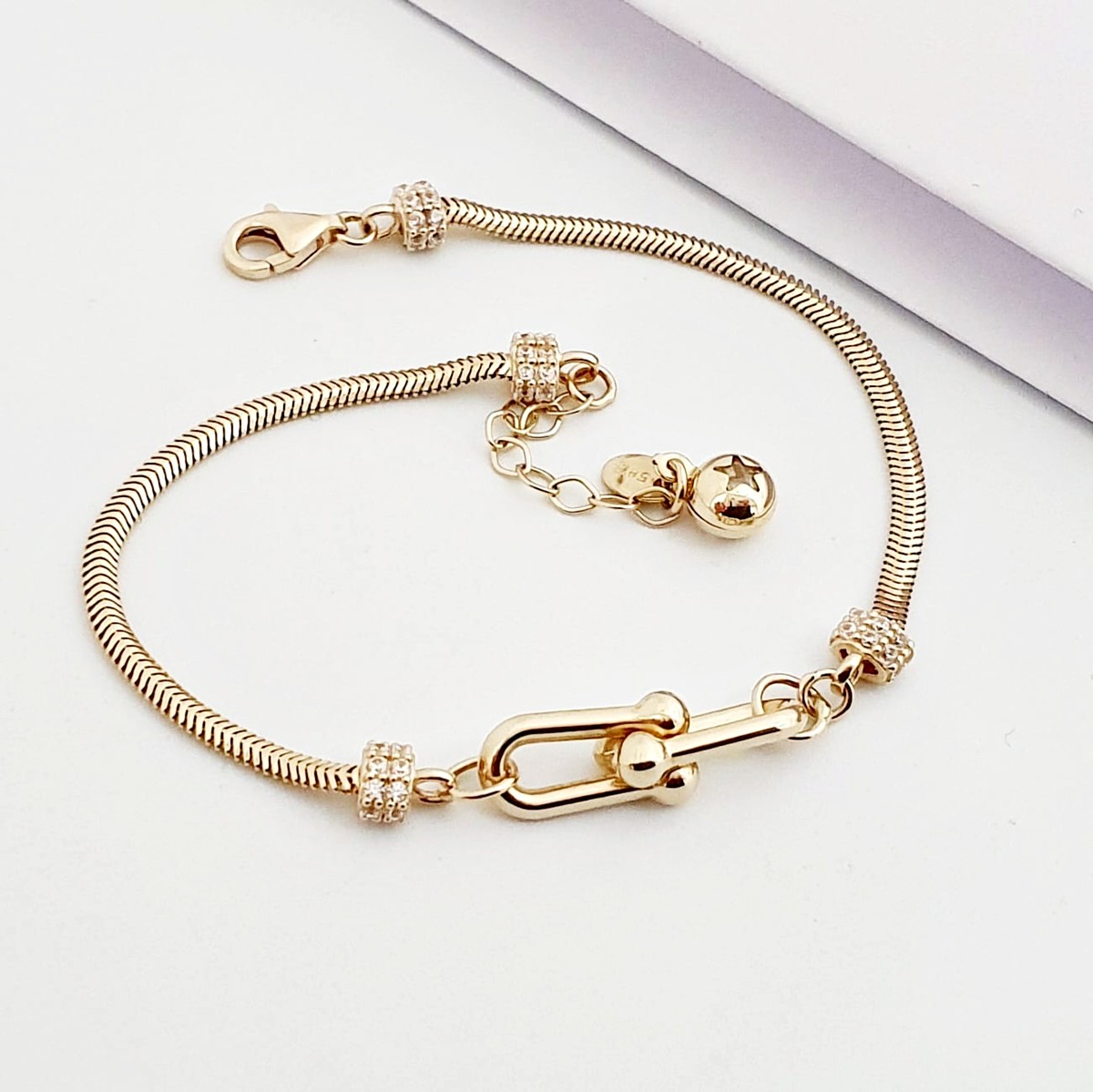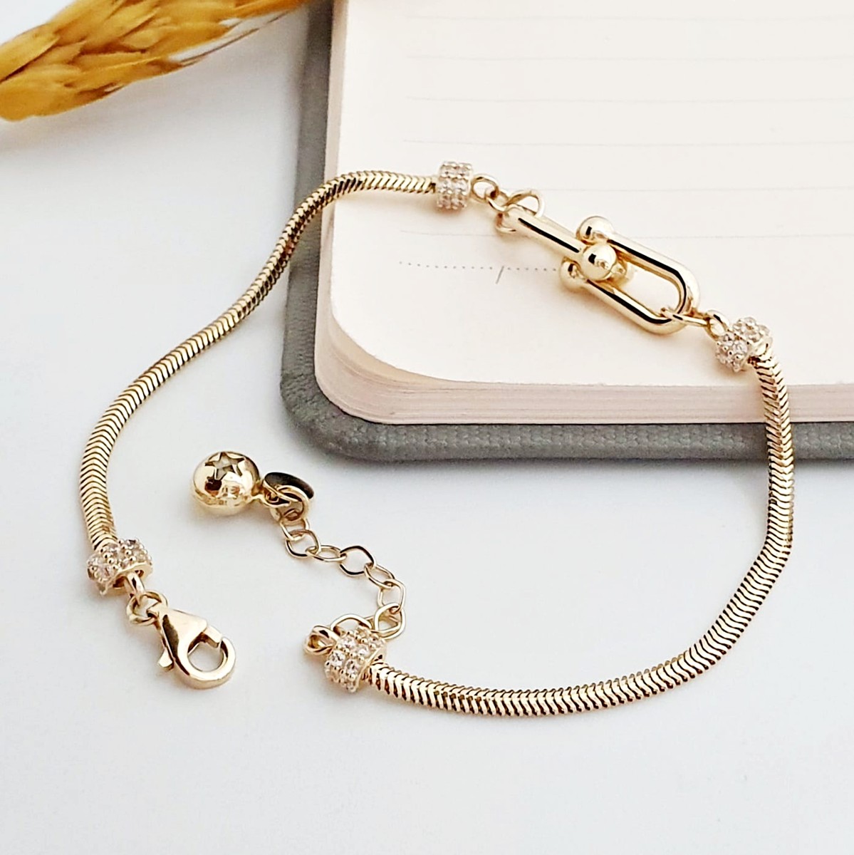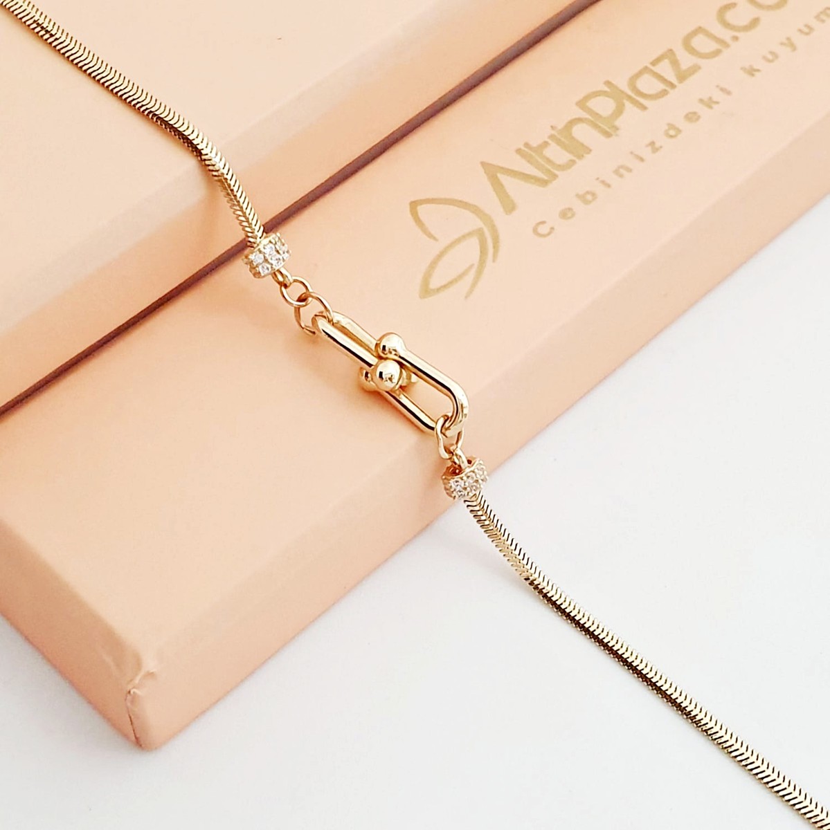 İtalyan ve Toplu Ataç Zincir Altın Bileklik - KN09087