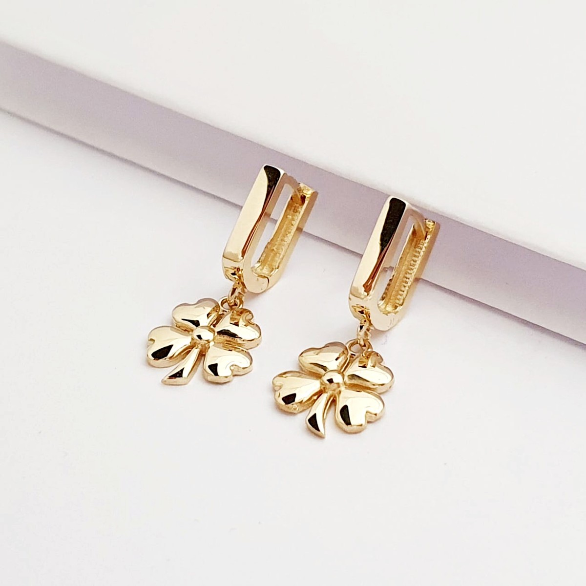 Kalpli Yonca 14 Ayar Altın Sallantılı Küpe KP12277