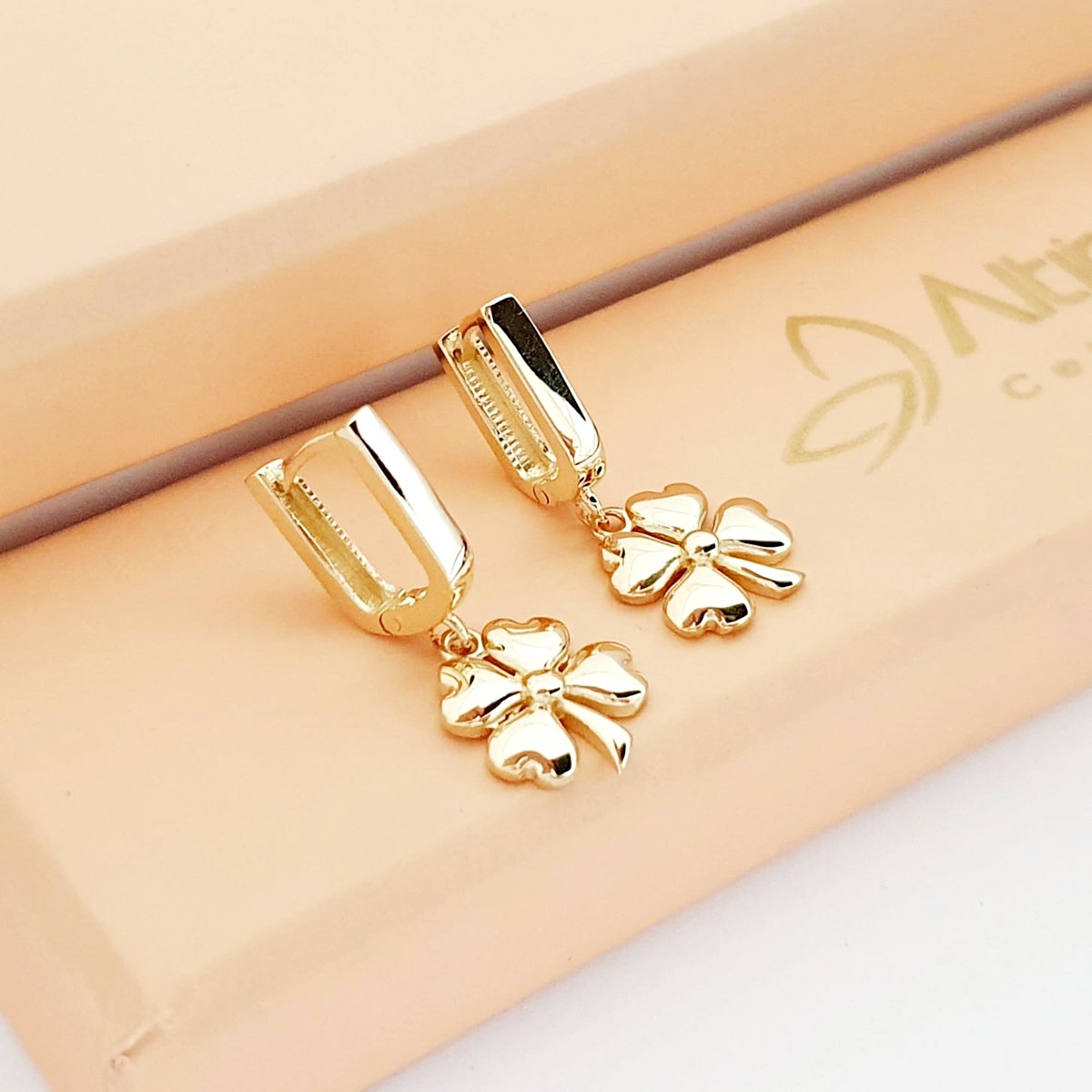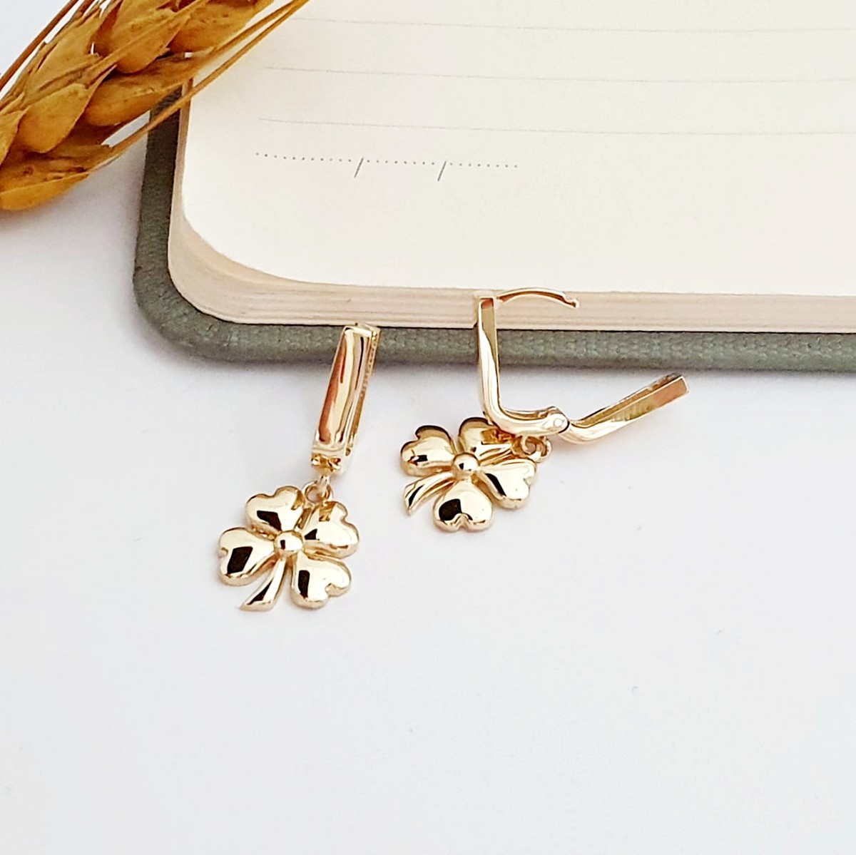 Kalpli Yonca 14 Ayar Altın Sallantılı Küpe - KP12277