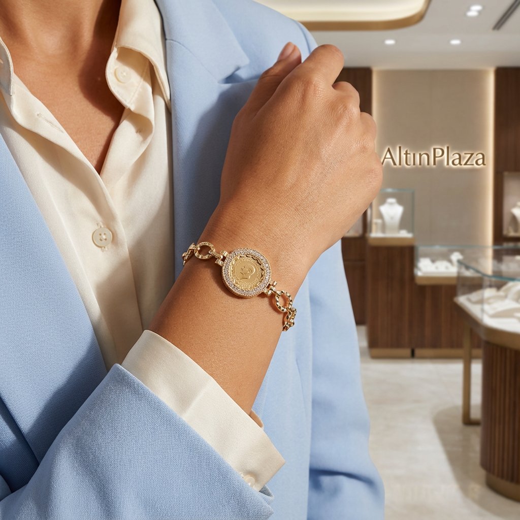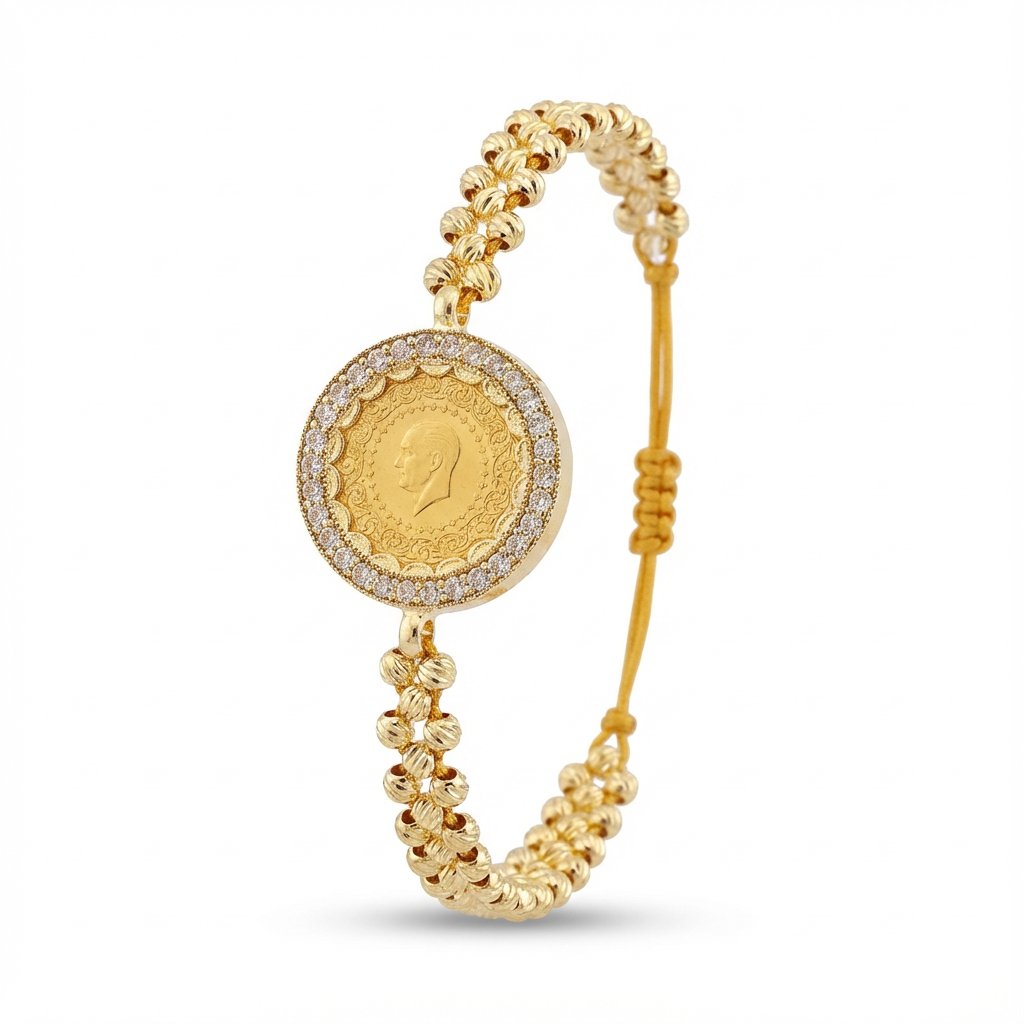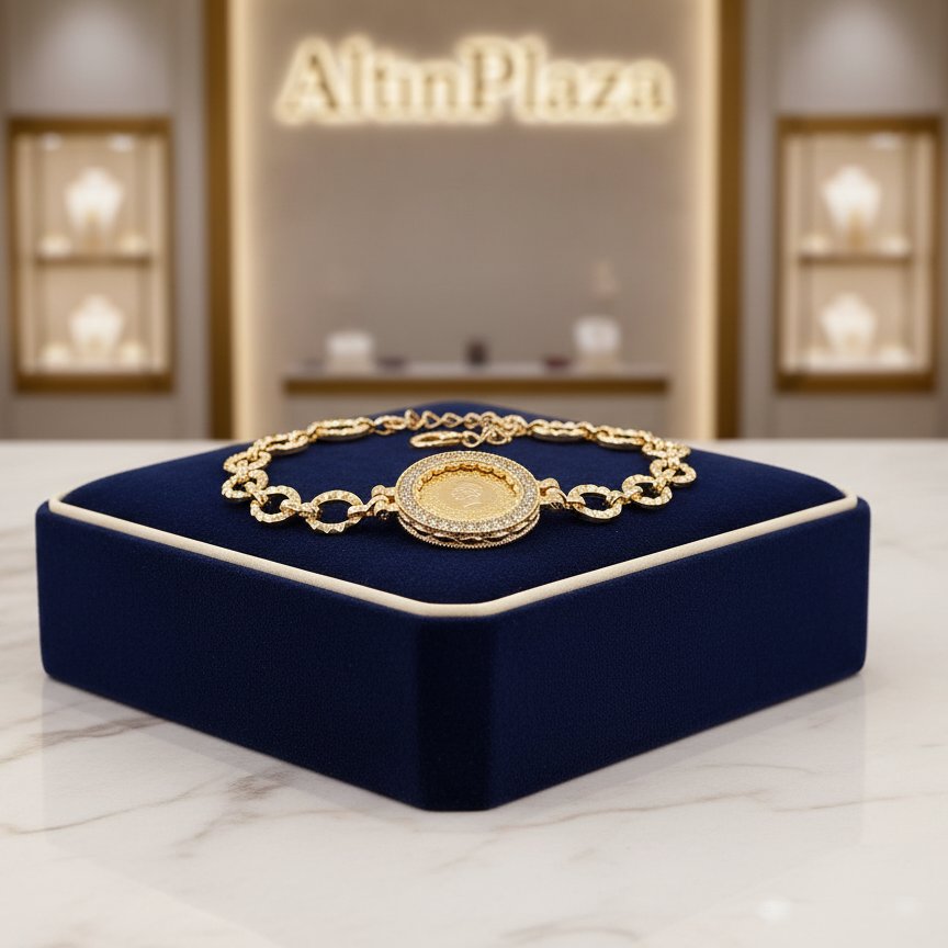 22 Ayar Çeyrek Altınlı Piramit Desenli İpli Bileklik modelini analiz ettiğimizde, bilekliğin merkezinde Türk yatırım altınının en sevilenlerinden biri olan 22 ayar çeyrek altın yer alıyor. Çeyrek altınlı bileklik modelleri farklı tasarımlarıyla Cebinizdeki Kuyumcu AltınPlaza'da bulabilirsiniz. Çeyrek altın dışında gerisi altın DEĞİLDİR bilgisiyle şeffaf bir alışveriş deneyimi sunuyoruz.