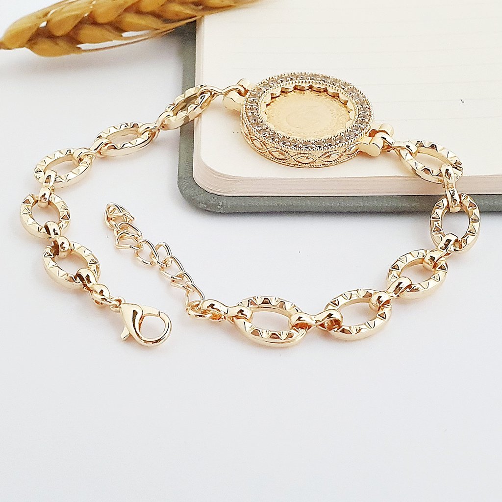Piramit Desenli Oval Zincir Çeyrek Altın Bileklik - FB01977
