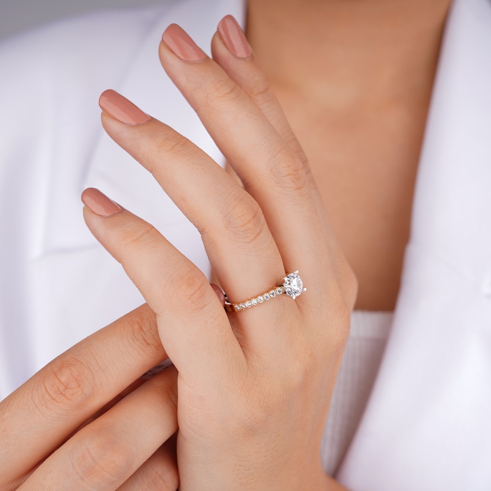 İncelediğiniz tektaş yüzük sarı (yeşil ) ve beyaz altından üretilmişitr.