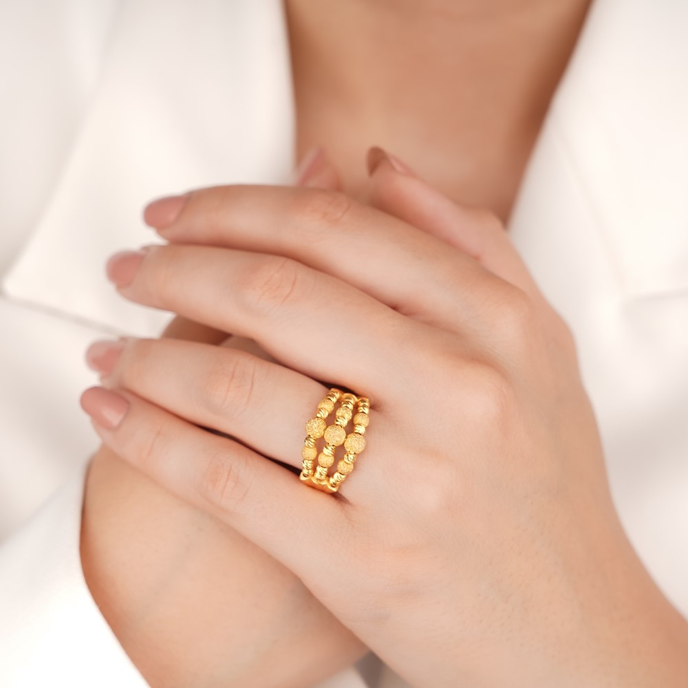 Bu üç kollu dorikalı kaburga yüzük, 14 ayar sertifikalı ve garantili bir üründür, size özel tasarımı ile dikkat çeker. Kumlu ve kalem işlemeli dorika toplarından oluşan bu yüzük, yüksek kalitedeki el işçiliği ile özenle üretilmiştir. Gündelik yaşamınızda veya özel davetlerde parmağınızda zarafet ve şıklık yaratmanın en güzel yolu olan bu yüzük, her anınıza anlam katmanızı sağlar.