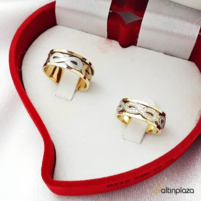 İncelemekte olduğunuz altın alyans modeli yeni sezon bir üründür. Bay ve Bayan ya da tek olarak siparişi de mümkündür. Bay ve bayan altın alyans üzerinde sonsuzluk deseni yer almaktadır. Bayan alyans üzerindeki sonsuzluklar swarosvki taşlarla süslenmiştir. Altın alyans, sipariş verildiği takdirde yüzük ölçünüze uygun olarak üretilmekte ve 2 gün içerisinde kargolanmaktadır. Alyans içerisine yazdırmak istediğiniz isim ve tarih var ise sipariş notu bölümünden bize bildirebilirsiniz.