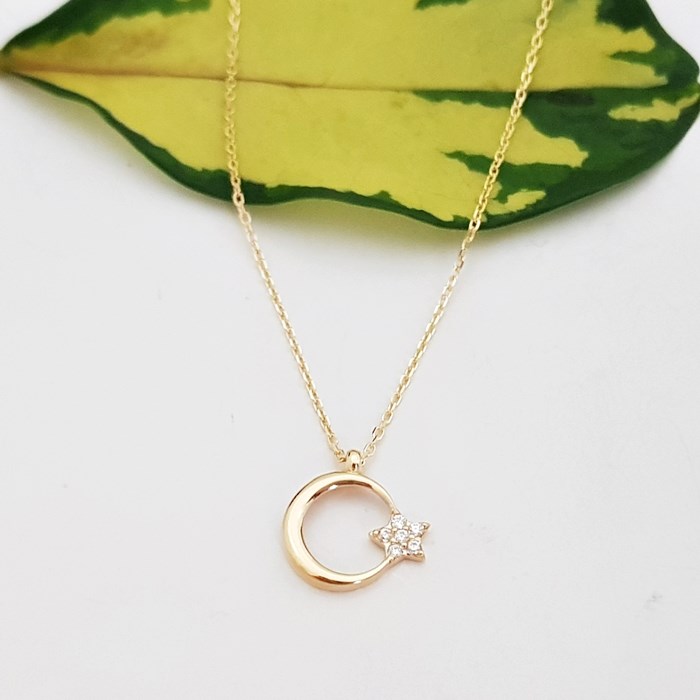 Gökyüzünden İlham Alan; Taşlı Ay Yıldız Altın Kolye