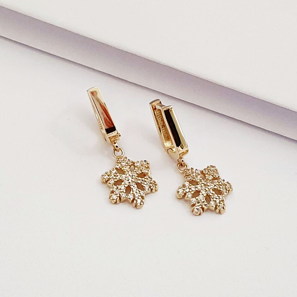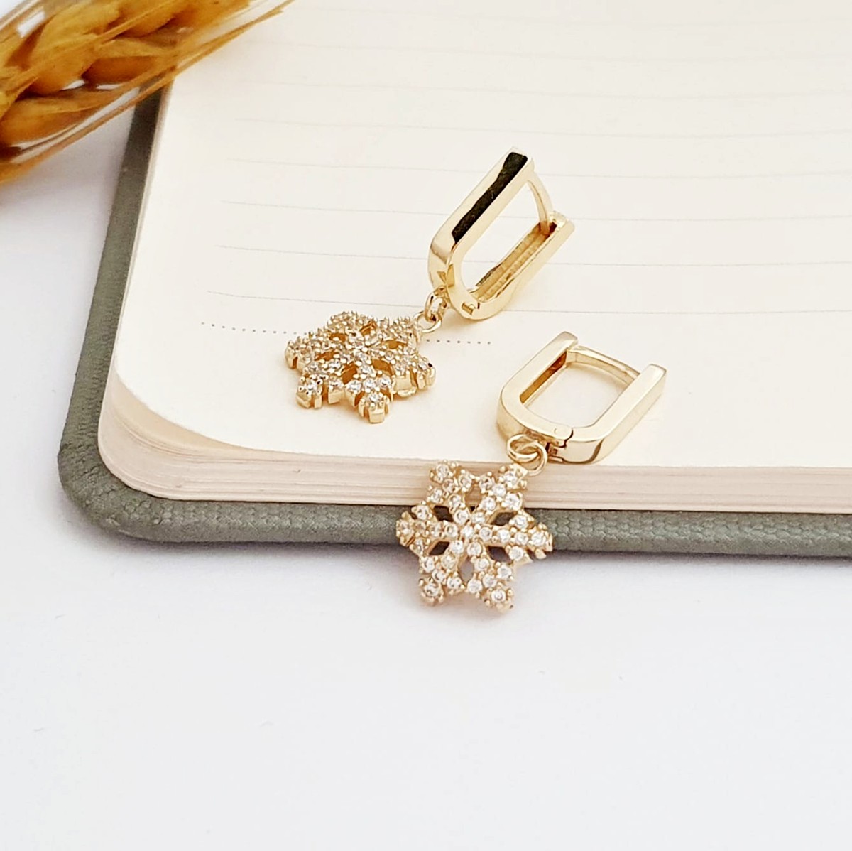 Taşlı Kar Tanesi 14 Ayar Altın Sallantılı Küpe - KP12278