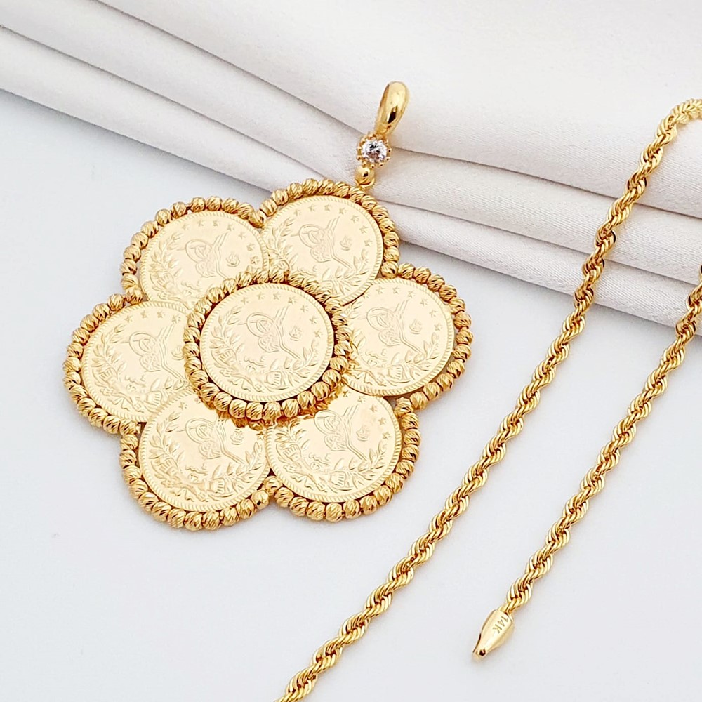 Tuğra, Osmanlı padişahlarının sembolik imzası olarak bilinen güçlü bir simgedir. Altın tuğralı kolyelerde bu derin anlam, modern üretim teknikleriyle buluşturulur. AltınPlaza’nın koleksiyonunda yer alan modeller; kabartmalı tuğra yüzeyi, detaylı hat işçiliği, geniş formu ve göz alıcı parlaklığıyla öne çıkmaktadır. Her bir tasarım, hem kültürel bir figürü taşır hem de özel günlerde hediye olarak tercih edilebilecek kalıcı bir değer sunar.