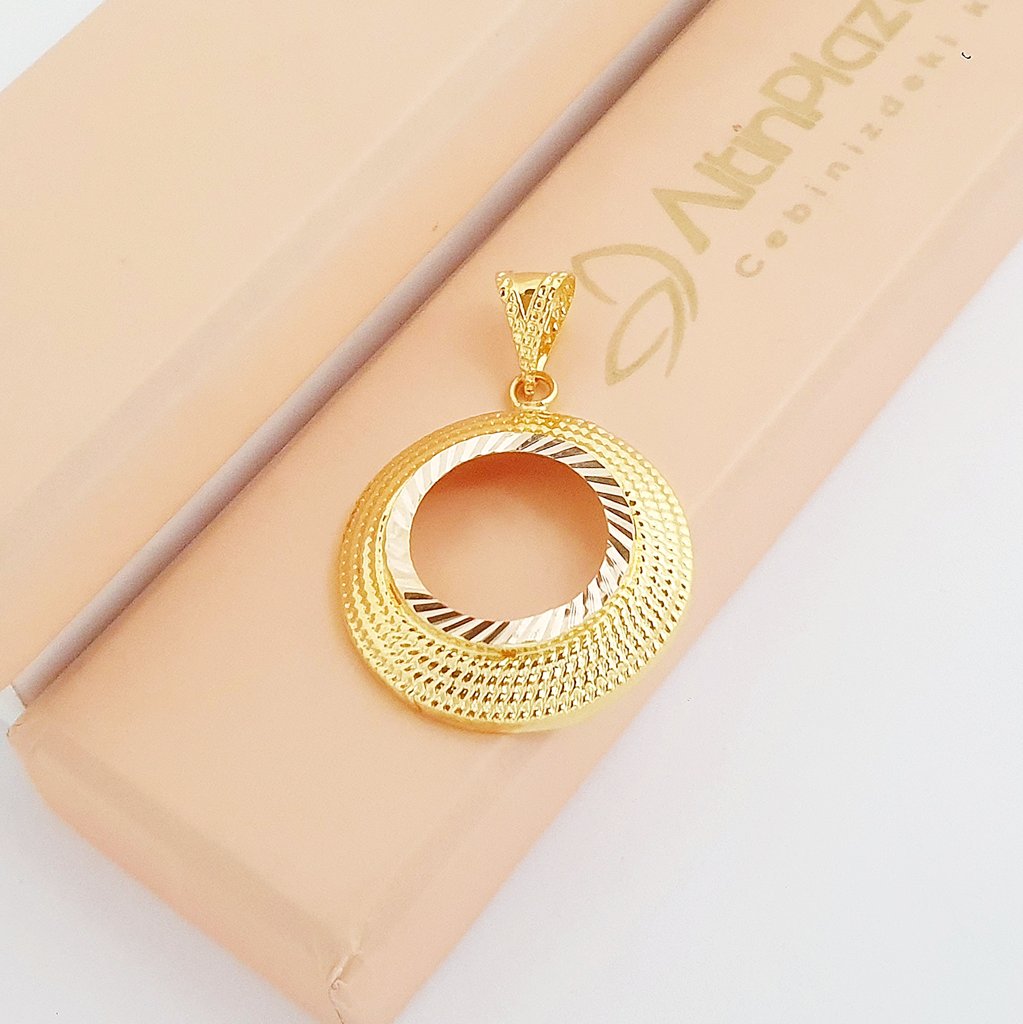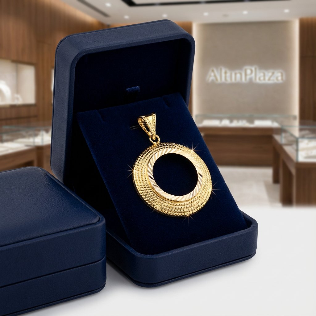 Yuvarlak Form Dövme Çeyrek Altın Çerçevesi Kolye Ucu KL14370