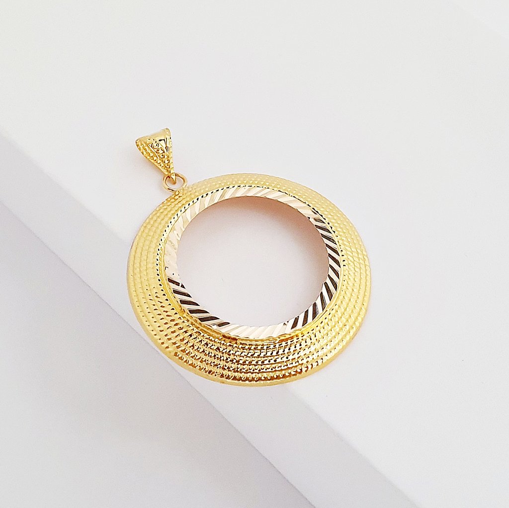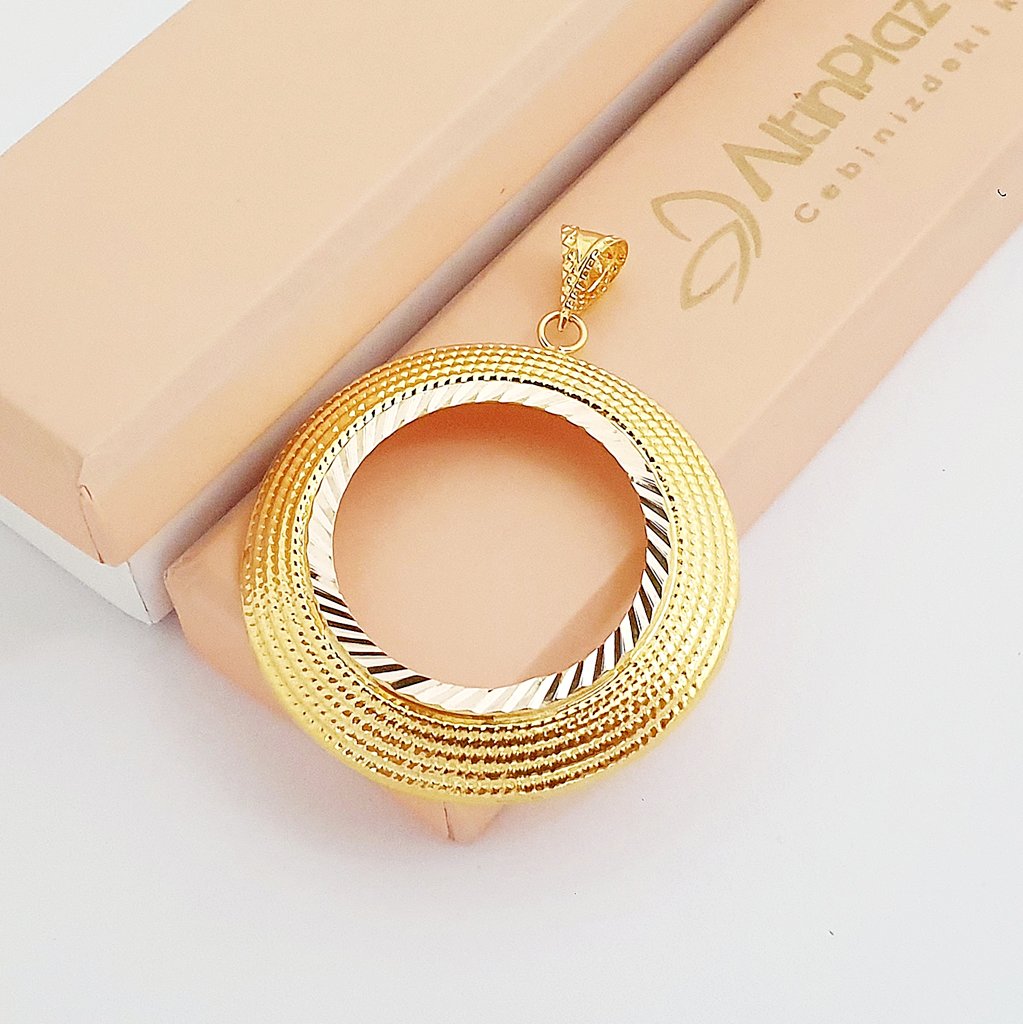 Yuvarlak Form Dövme Tam Altın Çerçevesi Kolye Ucu KL14368