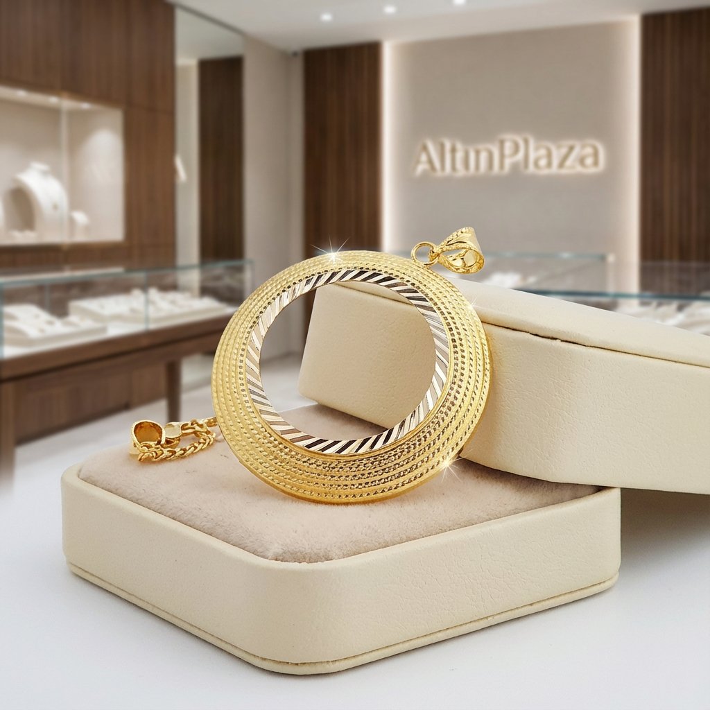 Her anına eşilk ederken, stilinde güçlü bir zarafet bırakır. Koleksiyonumuzun en güncel ve çarpıcı modelleri arasında yer alan bu altın parça, geleneği modern bir sanat eseriyle buluşturuyor. Bu özel çerçeve modeli, yüksek standartlarda 14 ayar altından üretilen tam altının takılabildiği zarif bir tasarımdır. Bu ürün bir kolye ucudur ve modeli dokuludur, dövme işlemelidir, bu da ona benzersiz bir derinlik ve ışıltılı tasarım katar.