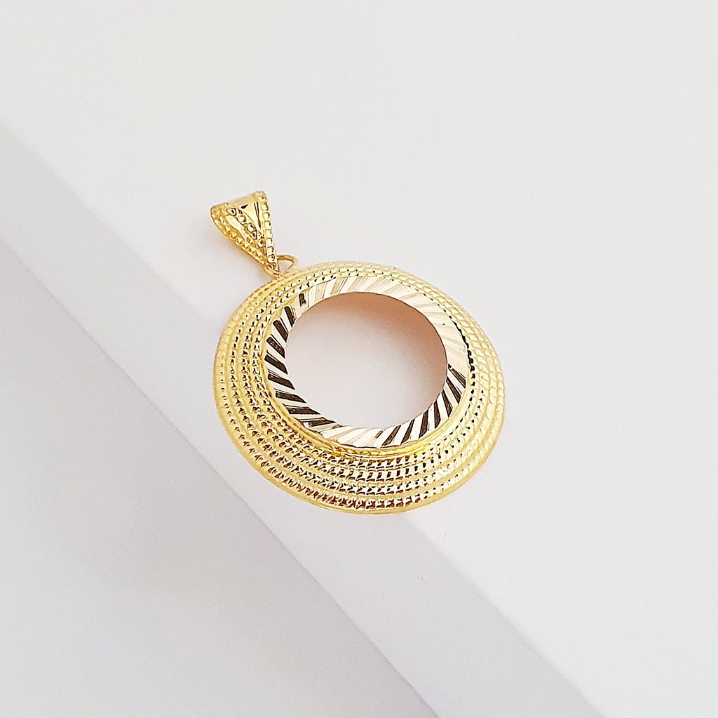 Yuvarlak Form Dövme Yarım Altın Çerçevesi Kolye Ucu KL14371